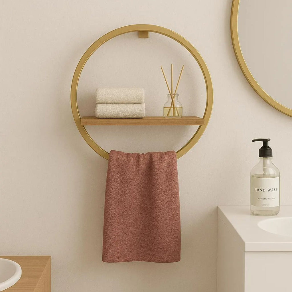 Introduce modern elegance to your bathroom with our Round Wall-Mounted Shelf with Towel Holder—a perfect blend of minimalism, functionality, and style. Designed with a sleek matte-black metal ring, this shelf adds a sophisticated touch to any contemporary space.