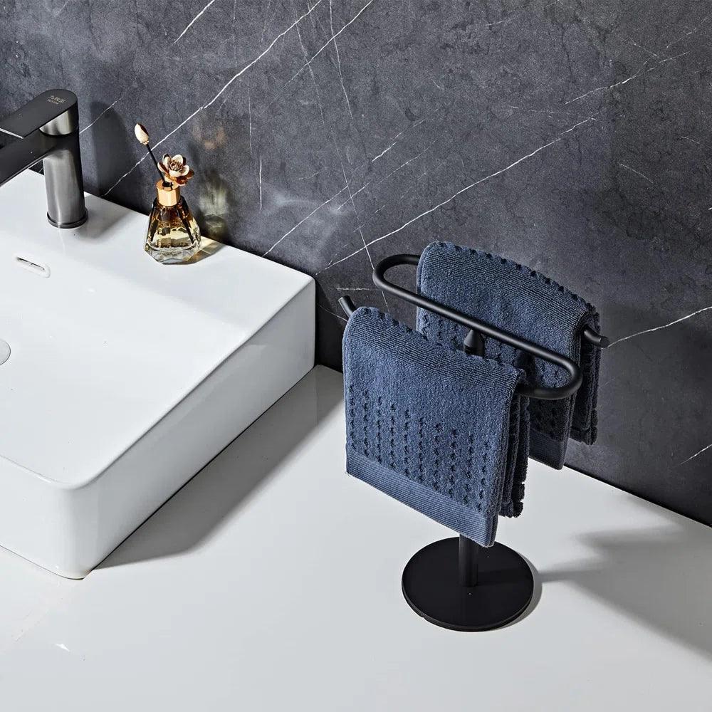 The shelf features three levels of storage, allowing you to easily organize and access your items. The top shelf can be used for decorative purposes, such as displaying small towels or greenery, while the bottom shelf is ideal for storing larger items like blankets or folded towels.