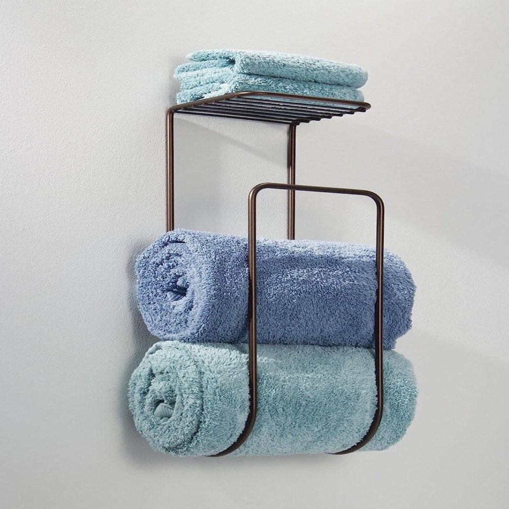 Metal Wall Mount Towel Rack Organizer with Storage Shelf - The Linen House