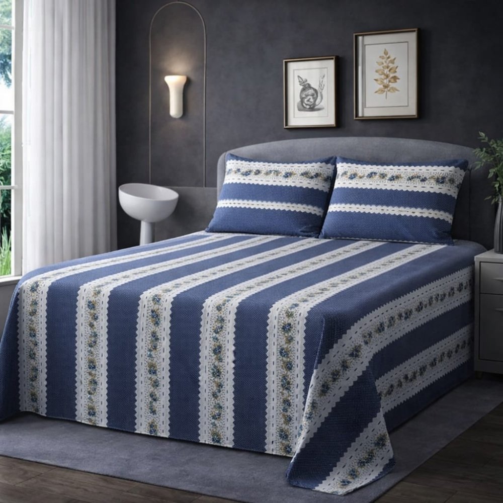 Blue Meadow Stripes Bedsheet (3pcs)