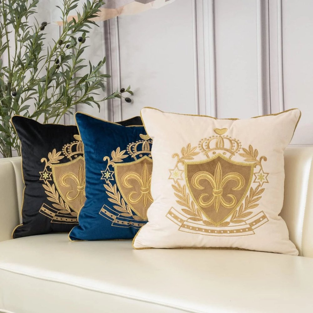 Royal Crest Embroidered Cushion Cover Style 1