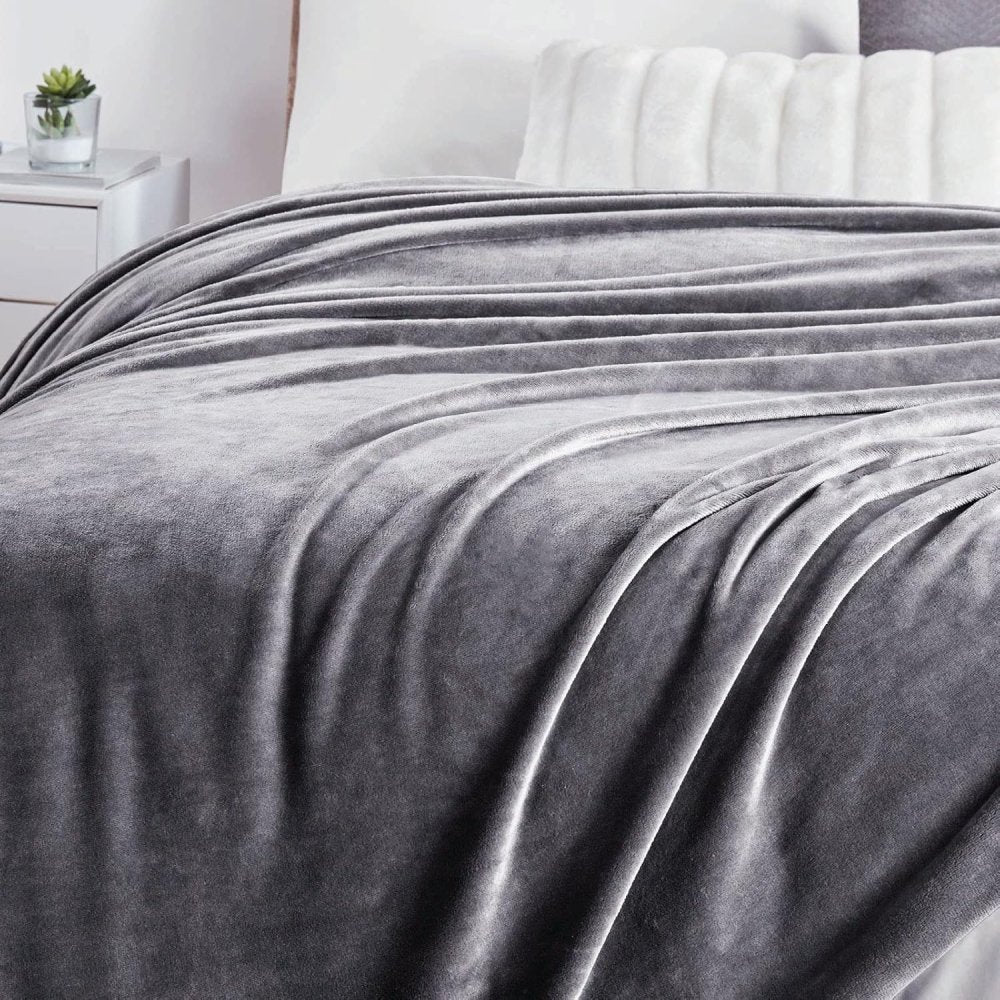 Soft Flannel Fleece Blanket In Gray - The Linen House