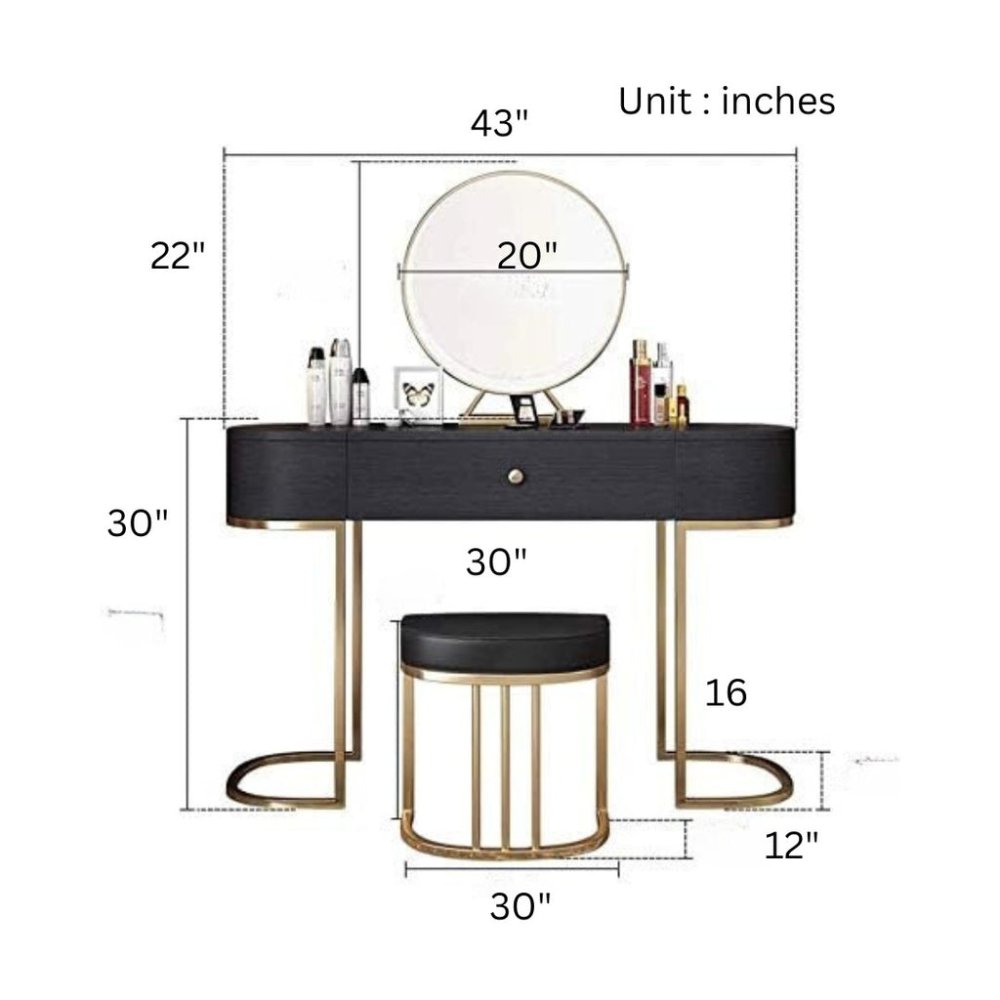 Description The combination of beauty and function is particularly enchanting. Concealed storage, rational use of space, opening is a dressing table, practical and convenient, particularly attractive. This vanity set can be your bedroom, wardrobe or hallway feature and sturdy furniture Material: Iron powder coated with MDF sheet Note: 50% advance payment . make to order article take 20-25 days. Delivery charges will apply according to city.
