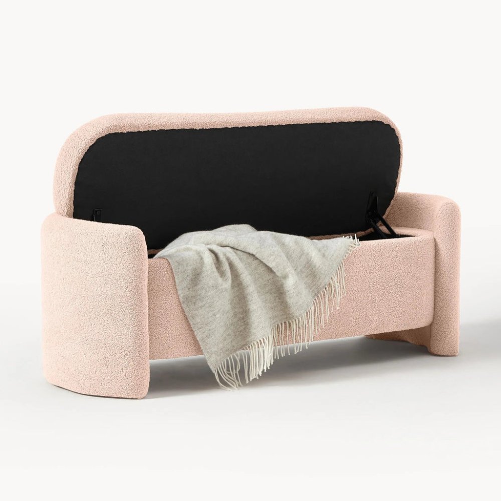 Upholstered bench not only offers comfortable seating, but also practical storage space. Ideal for storing blankets, cushions or other personal items. Perfectly placed at the foot of the bed, in the hallway or in the living room