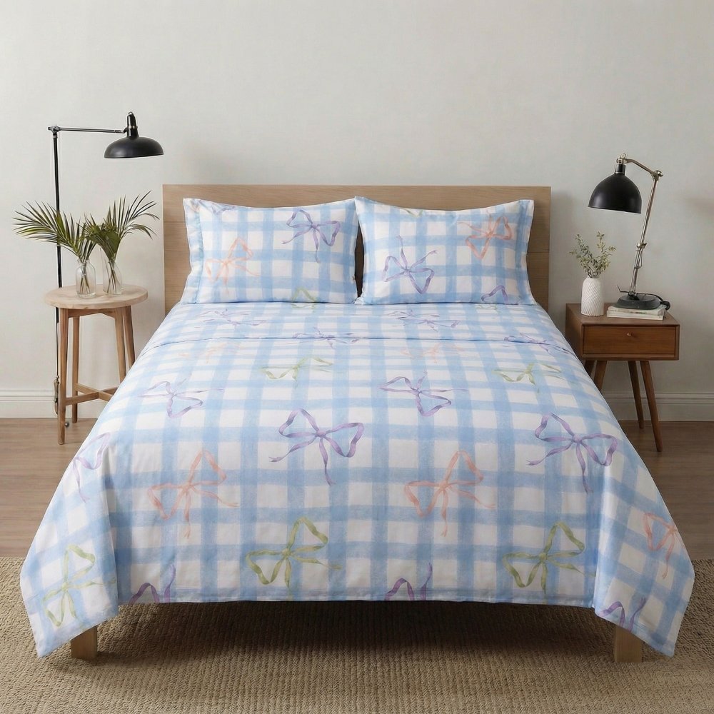 Bow Gingham Print Bedsheet – King Size - The Linen House