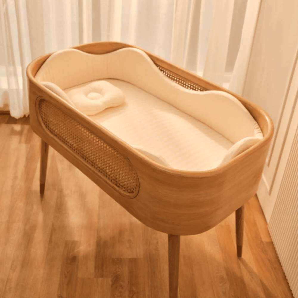 Its elevated, lightweight design makes it easy to move while ensuring your baby stays close at hand. With a natural finish and timeless aesthetic, it’s the perfect addition to any modern nursery.