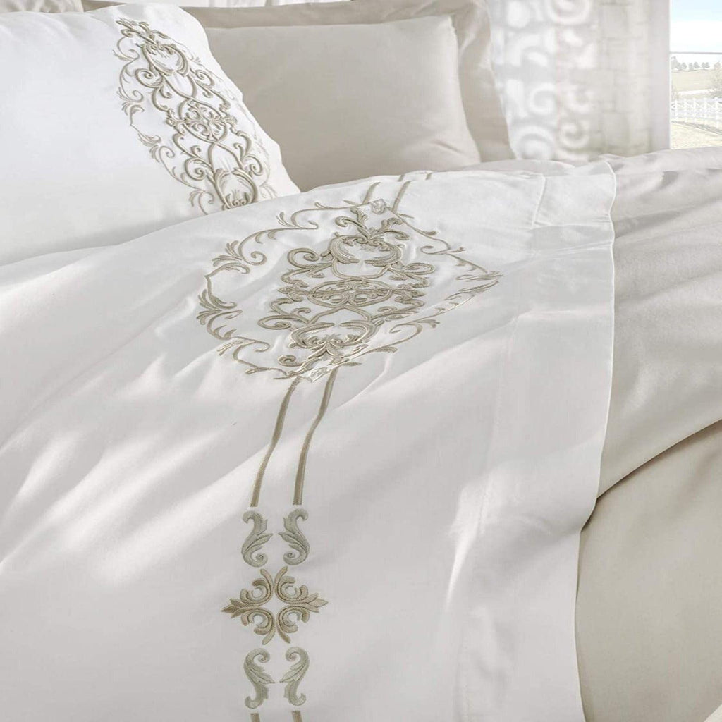 Beige & white Embroidery Duvet Set