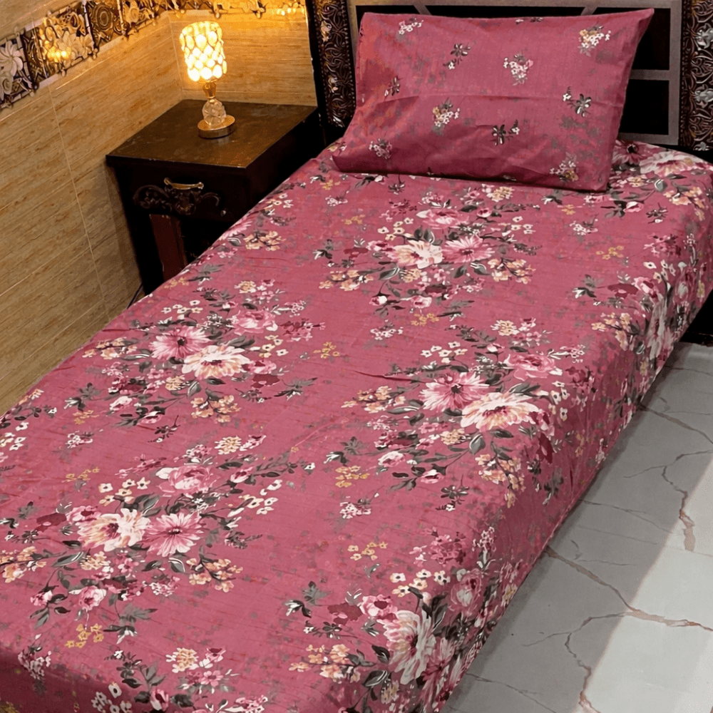Blush Pink Floral Printed Single Bedsheet (Pack of 2)