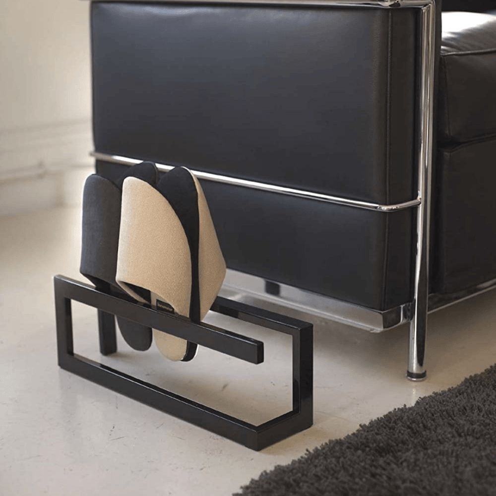 The back of the slippers can be stacked to hold 4 pairs The slim design allows it to be placed horizontally, so it can be stored neatly without taking up much space. Slipper's rack with a focus on stability and ease of use and functionality.