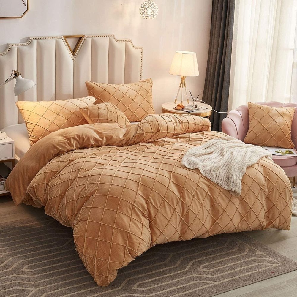 "Luxurious Velvet Pinch Pleat Duvet Set"