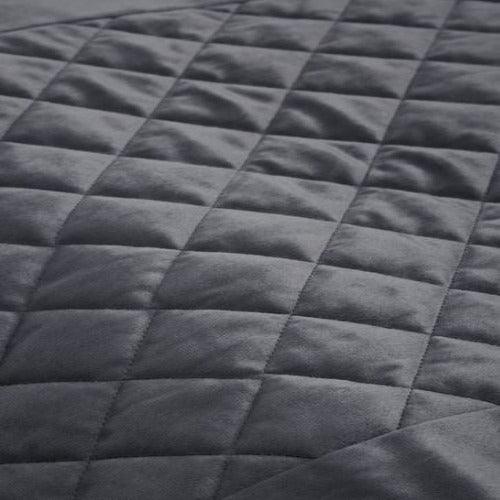 A luxe bed set in velvet with quilted panels, adding sophisticated style to your bedroom.