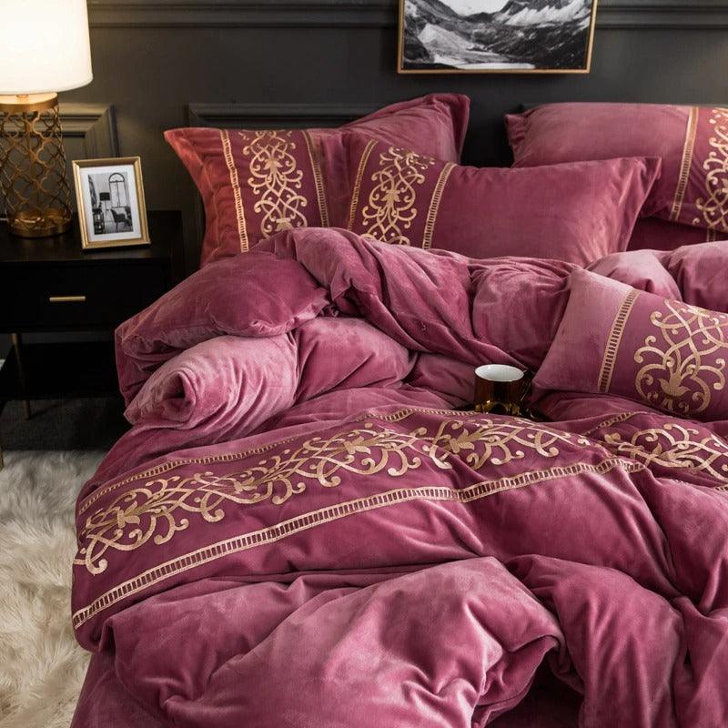 Luxury Charm Pink New Embroidered Velvet Duvet Set - The Linen House