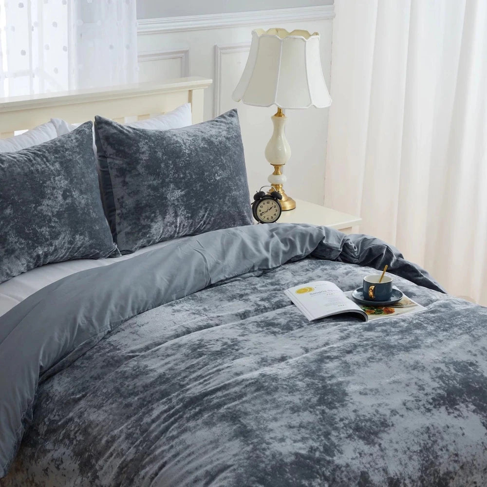 Plain Velvet Duvet Set Grey