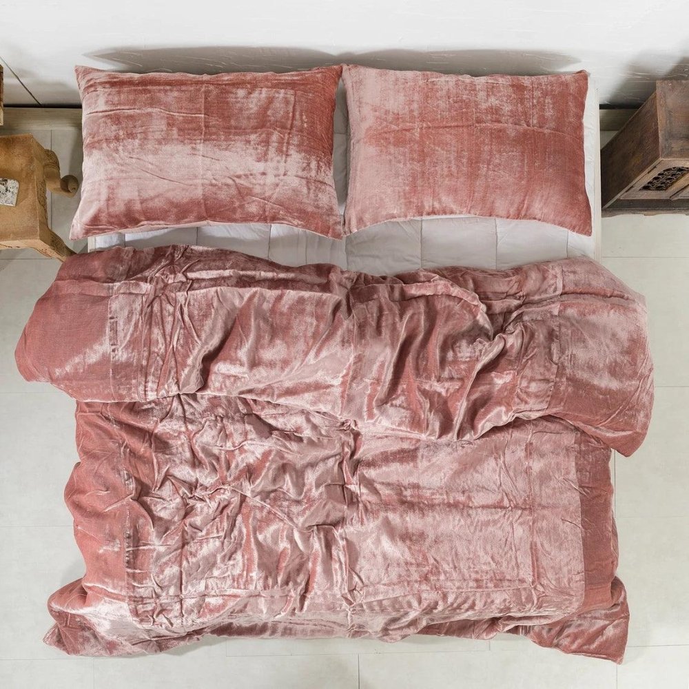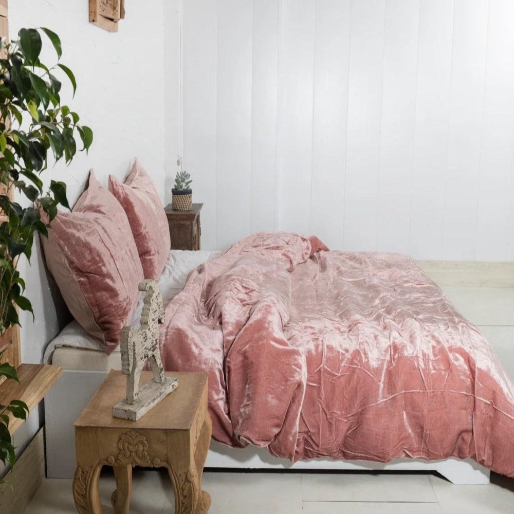 Plain Velvet Duvet Set Pink - The Linen House