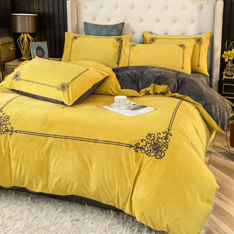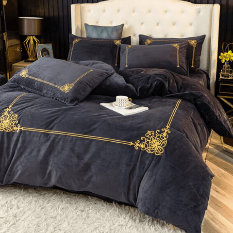 Ruffle Embroidery Velvet Purple – Luxurious and Elegant Bedding Accent