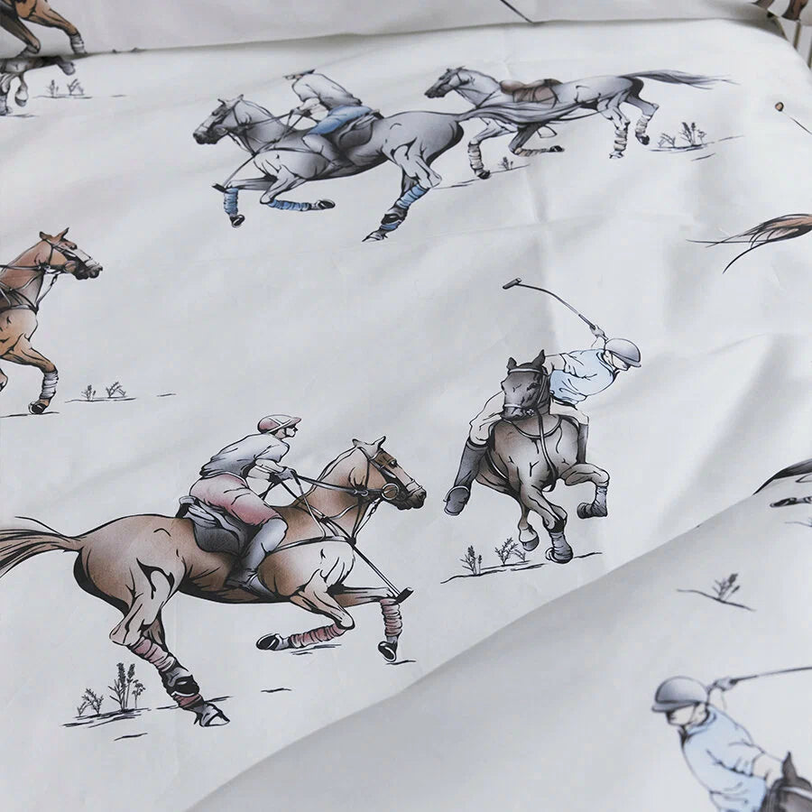Luxury Polo-Themed Cotton Bedding Set – Elegant Equestrian Design