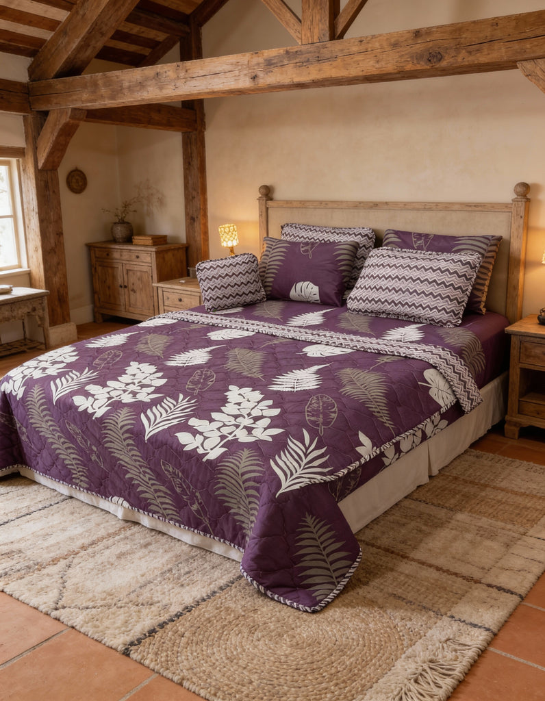 Transform your bedroom into a haven of comfort and style with our 7Pc Printed Bedspread Set. Crafted with a premium cotton mix, this set includes everything you need to elevate your space. The King Size Filled Comforter offers plush warmth and softness, while the King Size Bedsheet provides a smooth, breathable base. Featuring 2 Quilted Pillow Covers, 2 Simple Pillow Covers, and a Quilted Cushion Cover, this set ensures a cohesive and inviting aesthetic. Available in a variety of stylish prints ranging from bold geometrics to serene florals, each design is meticulously crafted for both beauty and durability. With 100% fine materials and exquisite detailing, this comforter set is the perfect blend of luxury and comfort for your bedroom.