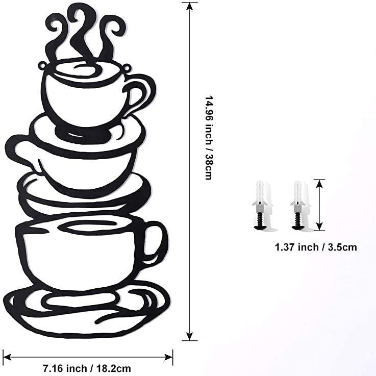 Coffee Cup Metal Wall Art, Farmhouse Kitchen Restaurant Decor Coffee Bar Sign, Black
